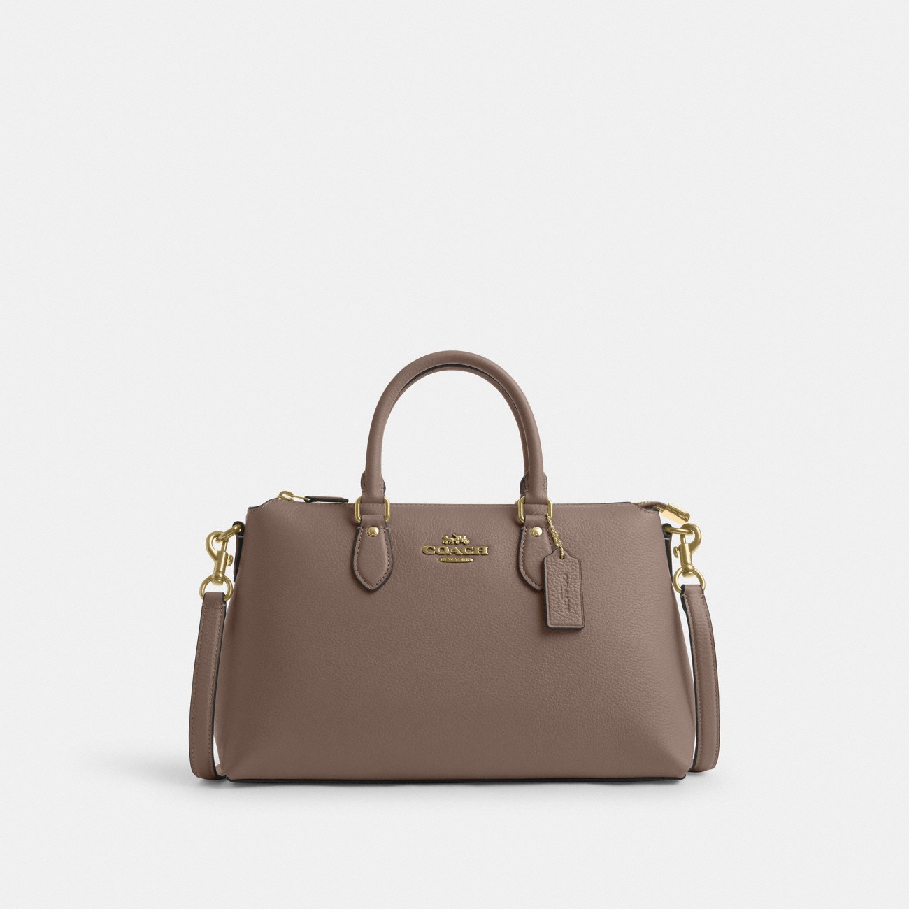 - Our Georgia Satchel has a sleek and structured silhouette that elevates your personal style. Crafted of refined pebble leather, this leather satchel bag features an outside zip pocket, an inside multifunction pocket and a secure zip-top closure. With a spacious interior, this crossbody satchel bag can carry all your essentials, plus a little extra for those unexpected moments. Wear it as a crossbody when you’re on the go or carry it by the top handles for a classic look.