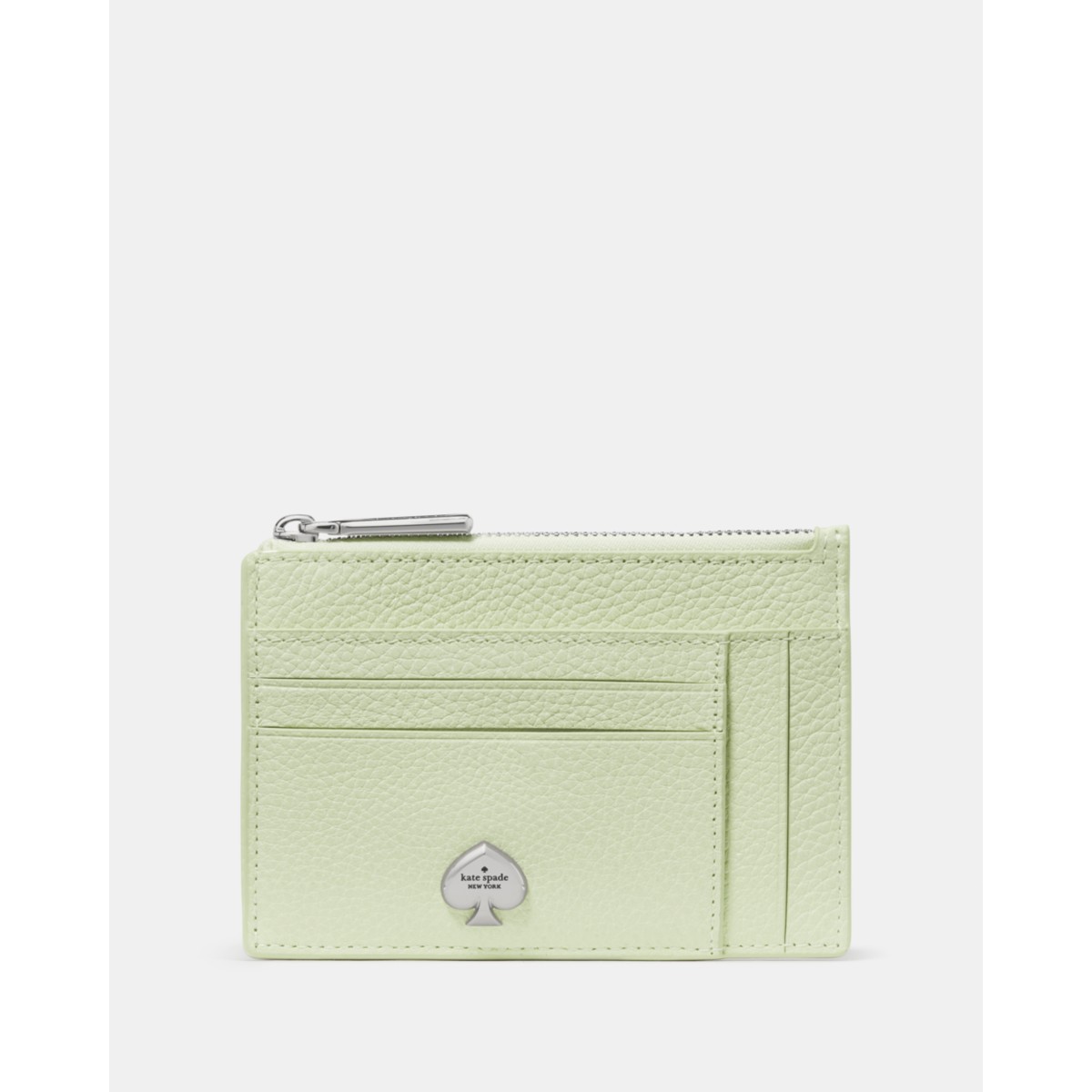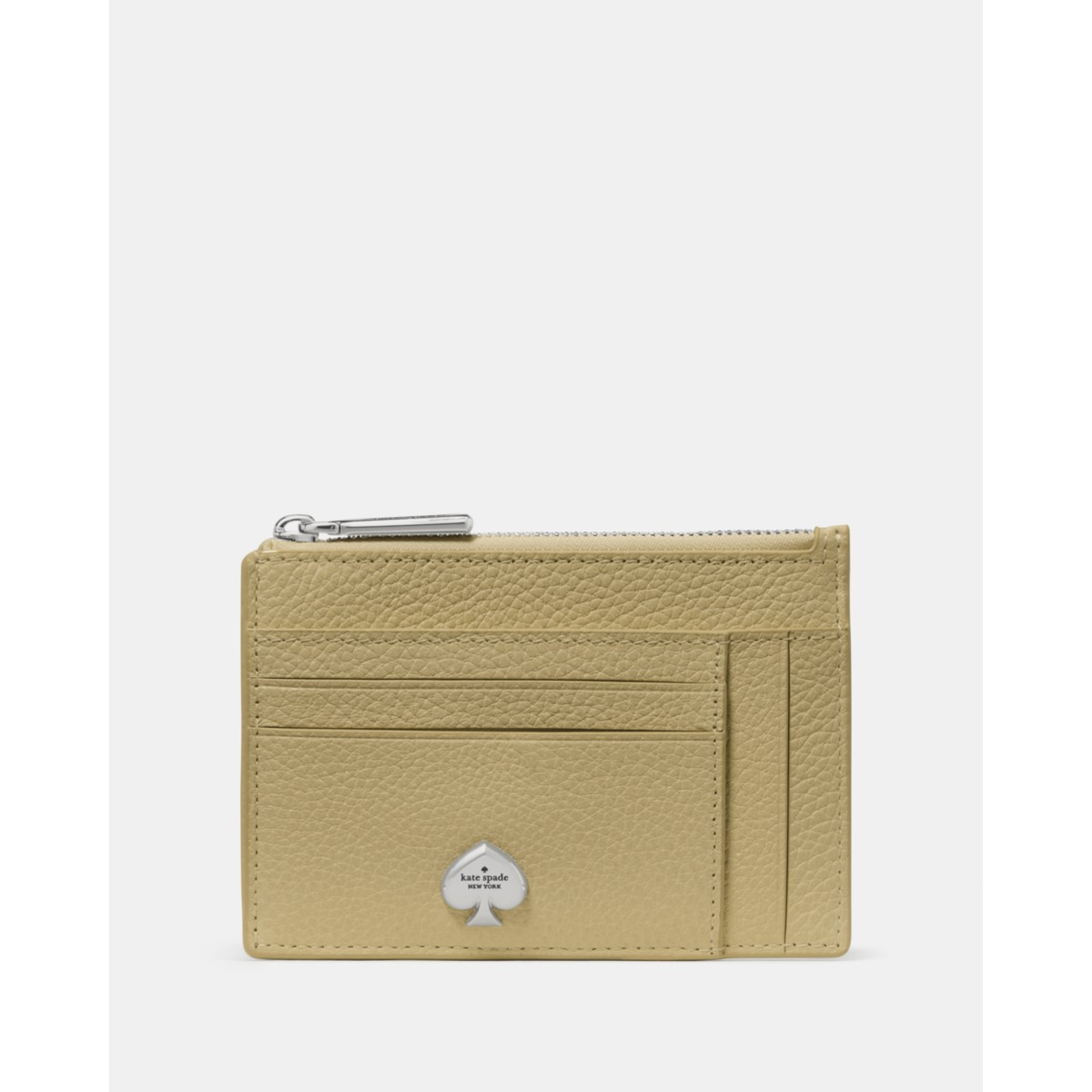 - Our Kayla card holder slips easily into your front pocket and keeps your essentials close for quick errands or travel. Two exterior slip pockets and eight card slots help organize everything you need, and the zip compartment secures coins or receipts. Crafted in black pebbled leather, this slim card case delivers a polished finish you can rely on every day.