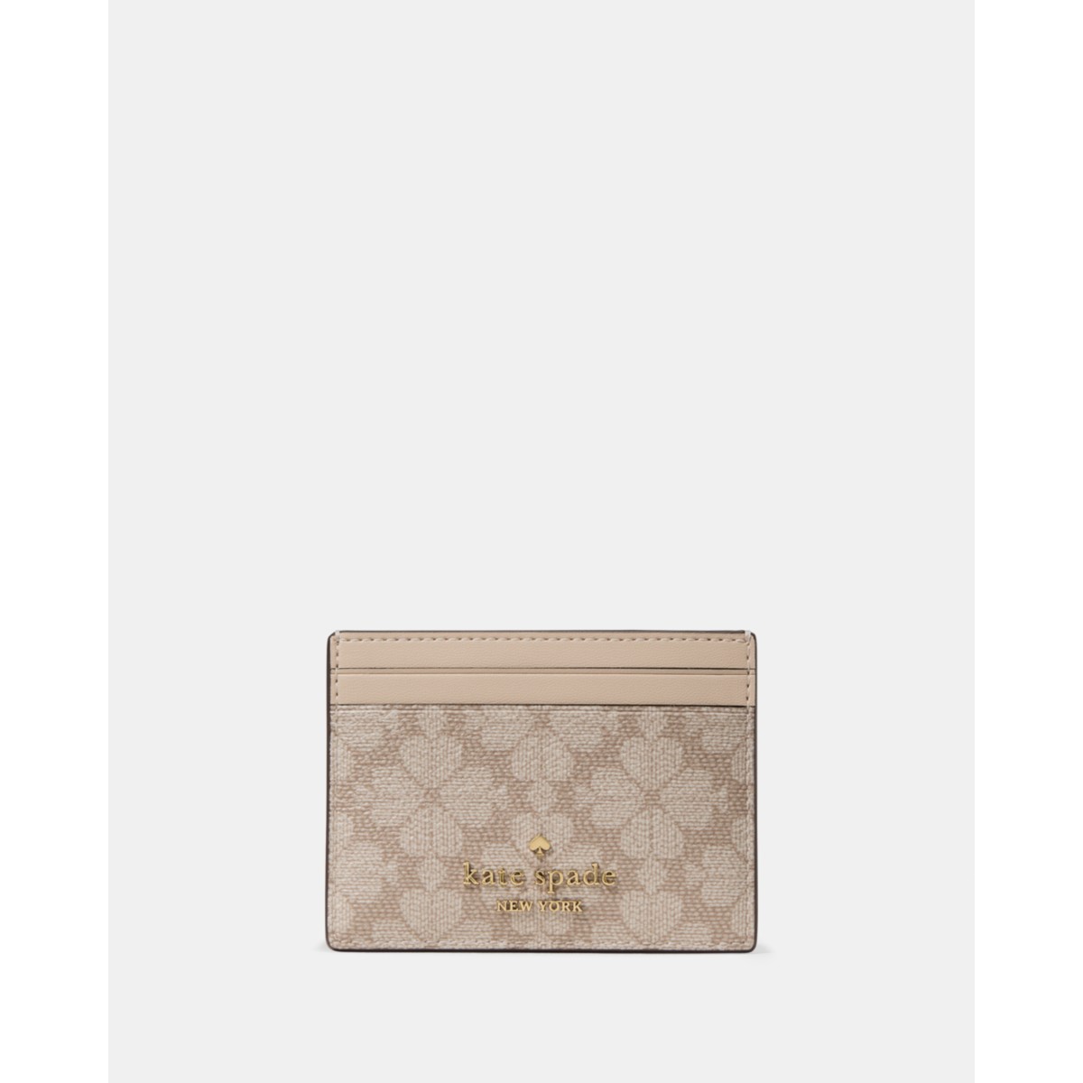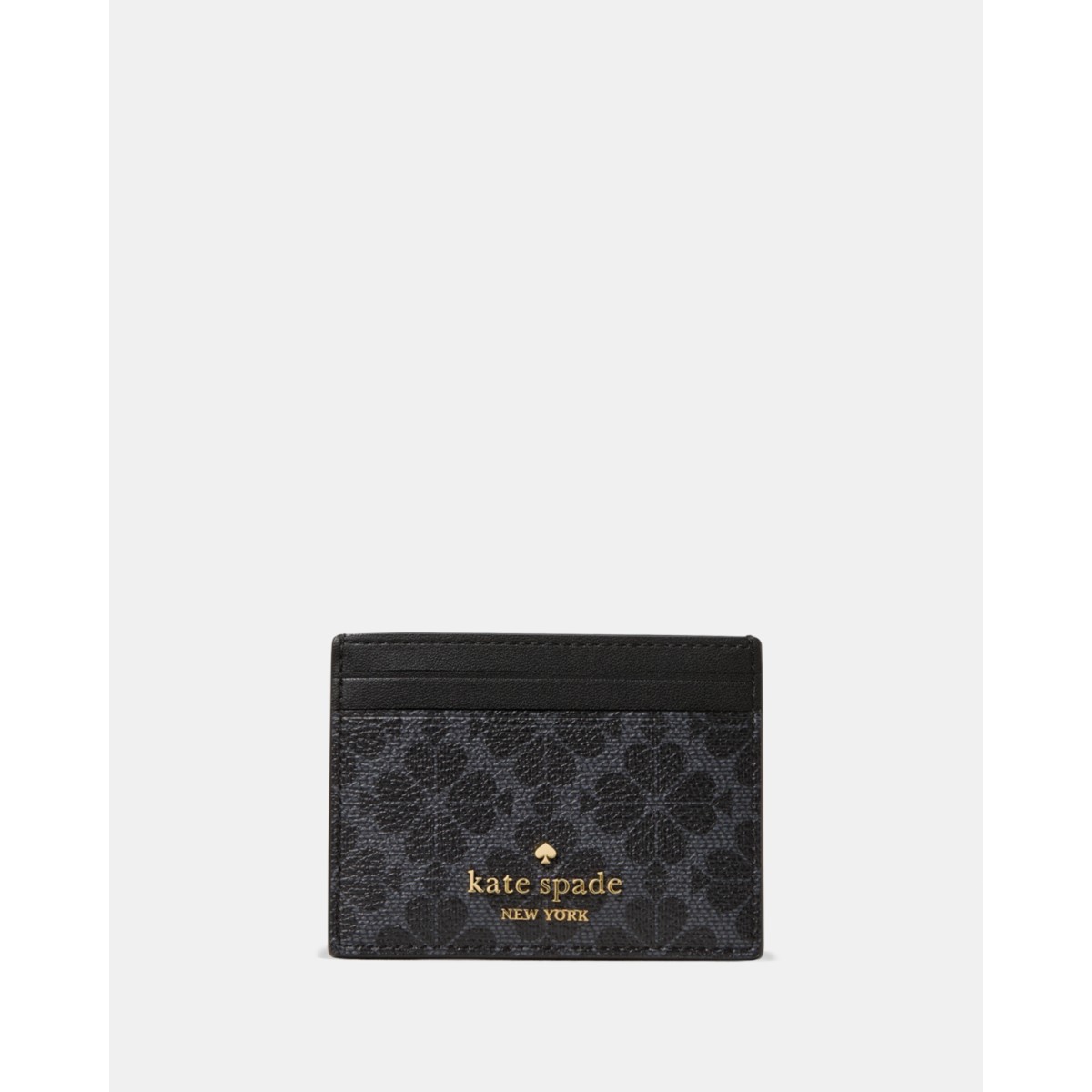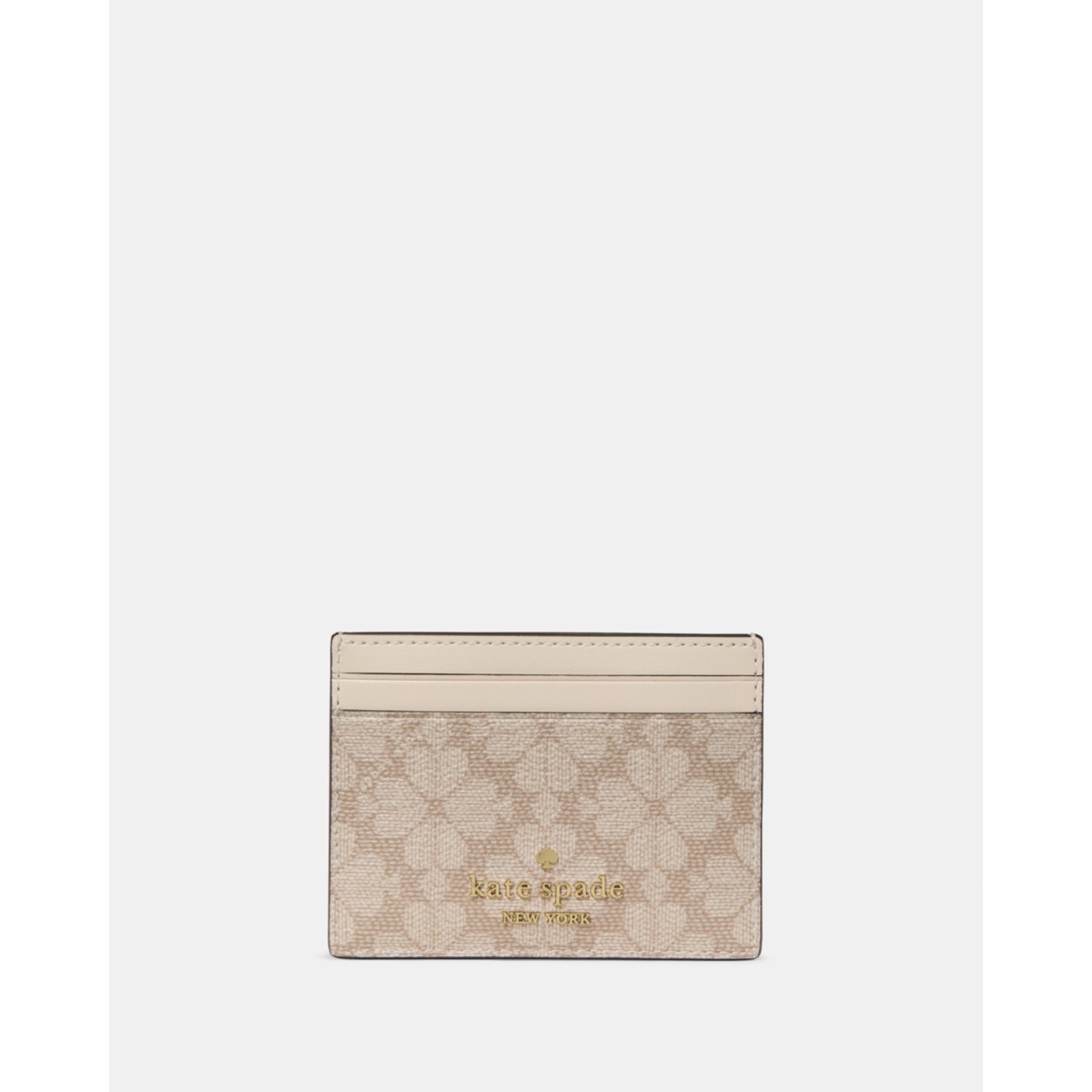 - When your wallet gets an edit. Our Spade Flower card holder is crafted in durable coated canvas with four exterior card slots for the cards you actually use and an open middle compartment for cash and receipts. It slips right into your tote or crossbody and takes up almost no room. (Look at you, doing all the practical things.)