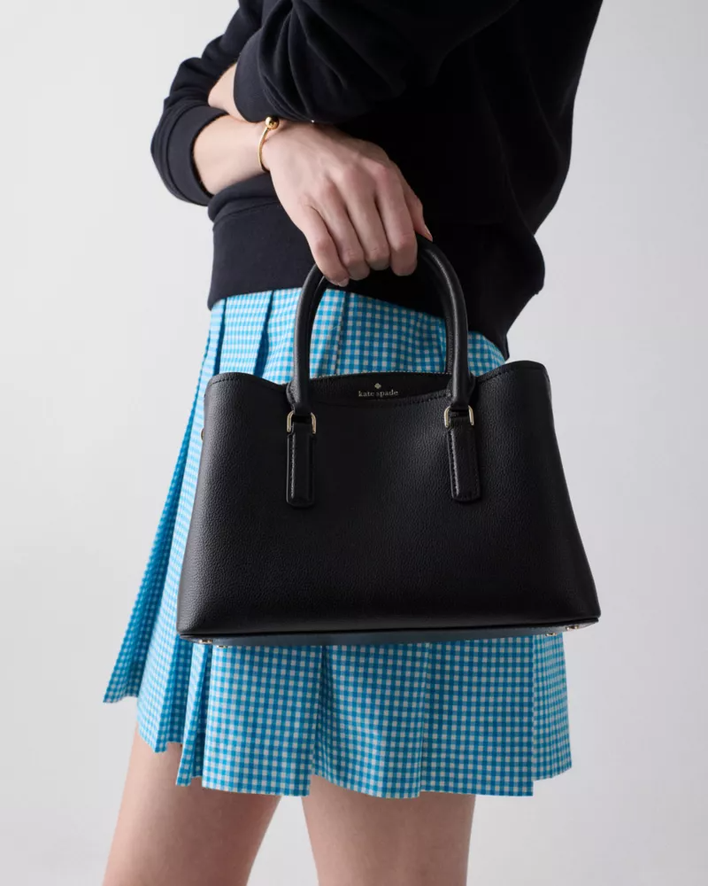 The Thompson Street small satchel brings polish to your workdays and beyond, with a structured silhouette that transitions easily from top handle to crossbody. An open-top design with a center zip divider keeps essentials organized, and a slip pocket inside gives quick access to your must-haves. Crafted in pebbled leather, this everyday small satchel is as versatile as it is refined.