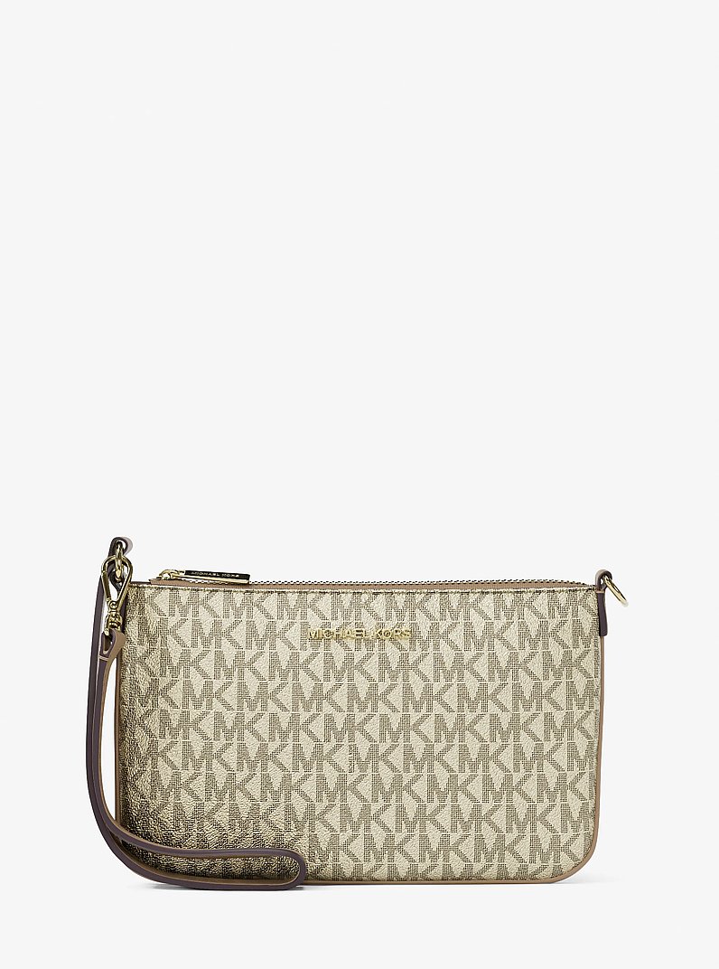 - Official Michael Kors Outlet Jet Set Small Metallic Signature Logo Wristlet preorder.