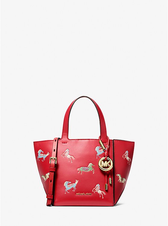 Our Jordi tote takes center stage as we enter the Year of the Horse. The quintessential grab-and-go bag, it’s crafted from vibrant, crimson-hued leather that’s printed and embossed with a charming and colorful horse motif. Designed with top handles and a crossbody strap for maximum versatility, it also folds flat for travel and storage. Make it your must-wear accessory for the holidays.