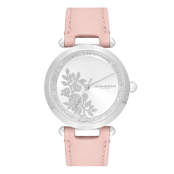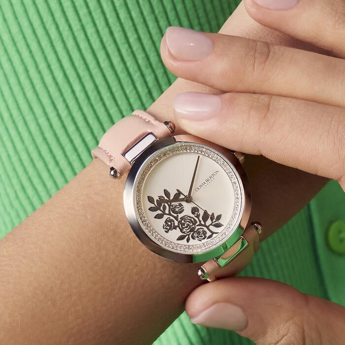 A flower designed to last forever: this Signature Floral watch draws its inspiration from the resilience of nature. Made for the nature-lovers that still crave an elevated style, featuring a modern T-bar design with subtle floral and luxe crystal detailing. With a cool silver finish and a blush leather strap for a soft, feminine feel.