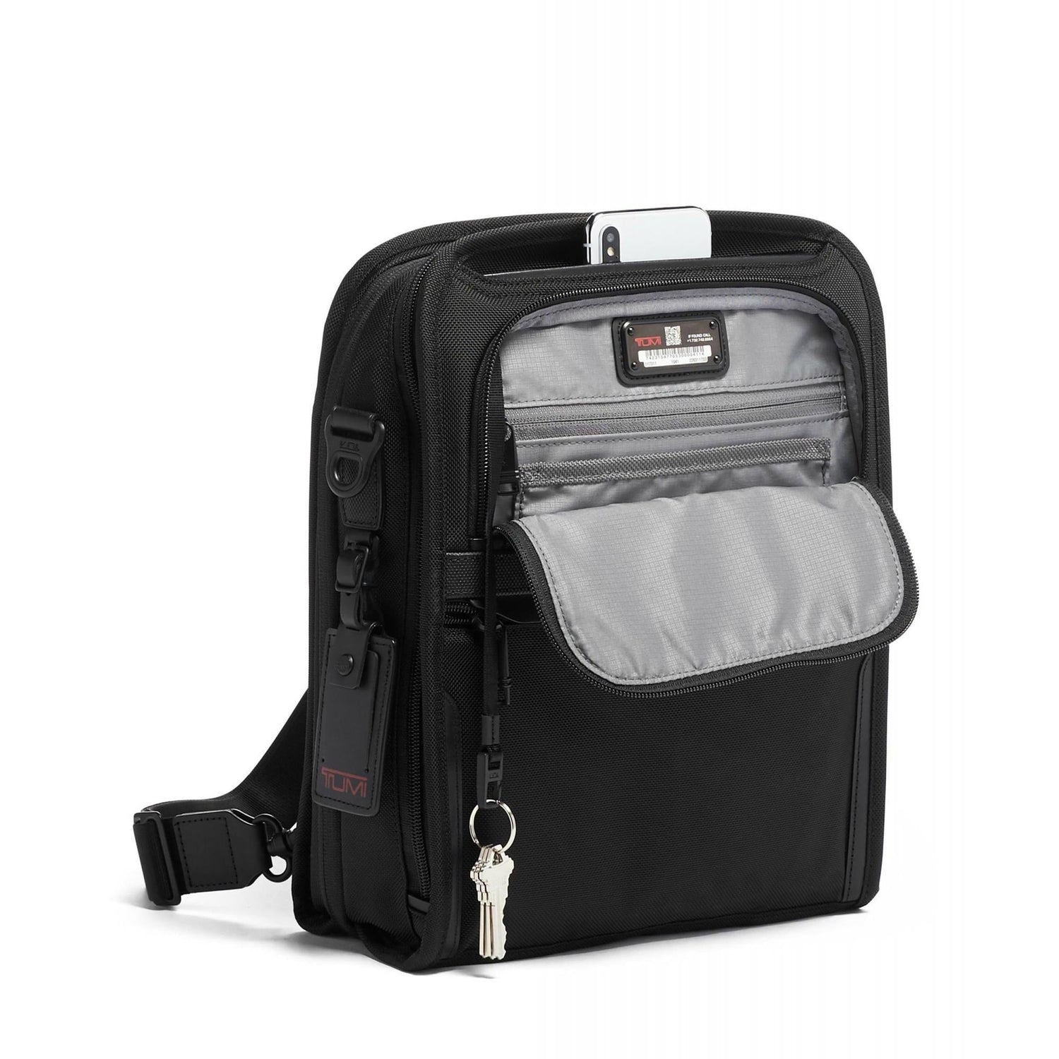 The TUMI Alpha 3 Medium Travel Tote is a versatile black travel tote made from durable FXT ballistic nylon with leather trim, built for commuting, business travel, and organized everyday carry.